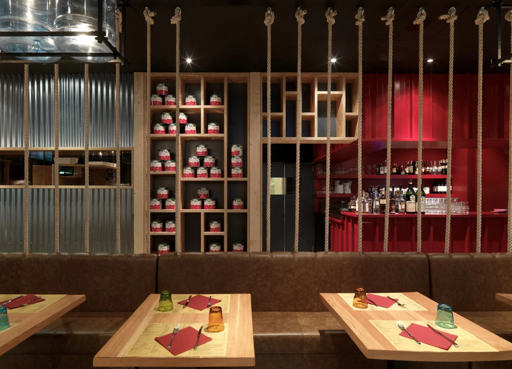 Pizzikotto nasce dalla passione per la qualità, con attenzione alle materie prime biologiche e alla filiera corta. Il progetto di arredo ha voluto raccontare questi valori anche attraverso lo spazio: materiali naturali, riferimenti al mondo agricolo, scaffali pieni di conserve e bottiglie, elementi di recupero e trasparenza progettuale. Un design che parla la stessa lingua della cucina.