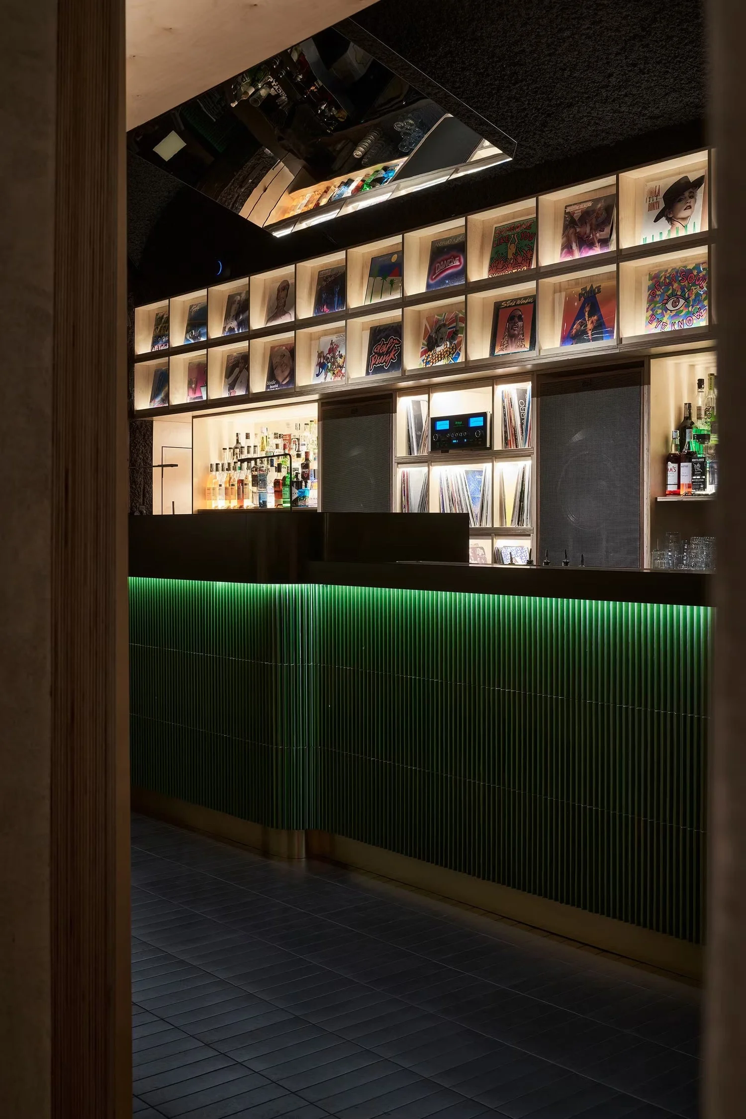 Abbiamo selezionato superfici e rivestimenti in grado di assorbire o diffondere il suono nel modo più naturale possibile, garantendo un ascolto pulito, immersivo, mai invadente. Anche l’insonorizzazione è stata curata nei minimi dettagli per isolare acusticamente il locale dall’esterno e viceversa, mantenendo intatta l’atmosfera ovattata dei listening bar giapponesi.